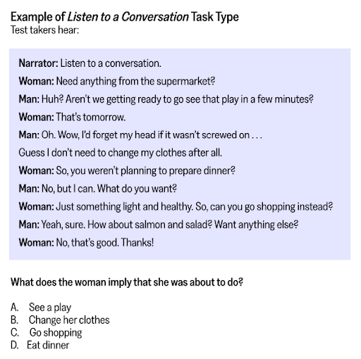 - Nội dung bài thi không có tính phân biệt và được dựa trên nghiên cứu từ ETS
