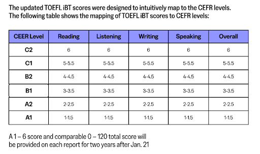 - Thang điểm phù hợp hơn khi được quy đổi sang CEFR (vd: band 5 = C1, thay vì dùng thang 120 nhu trước, quy đổi có thể bị chênh lệch)